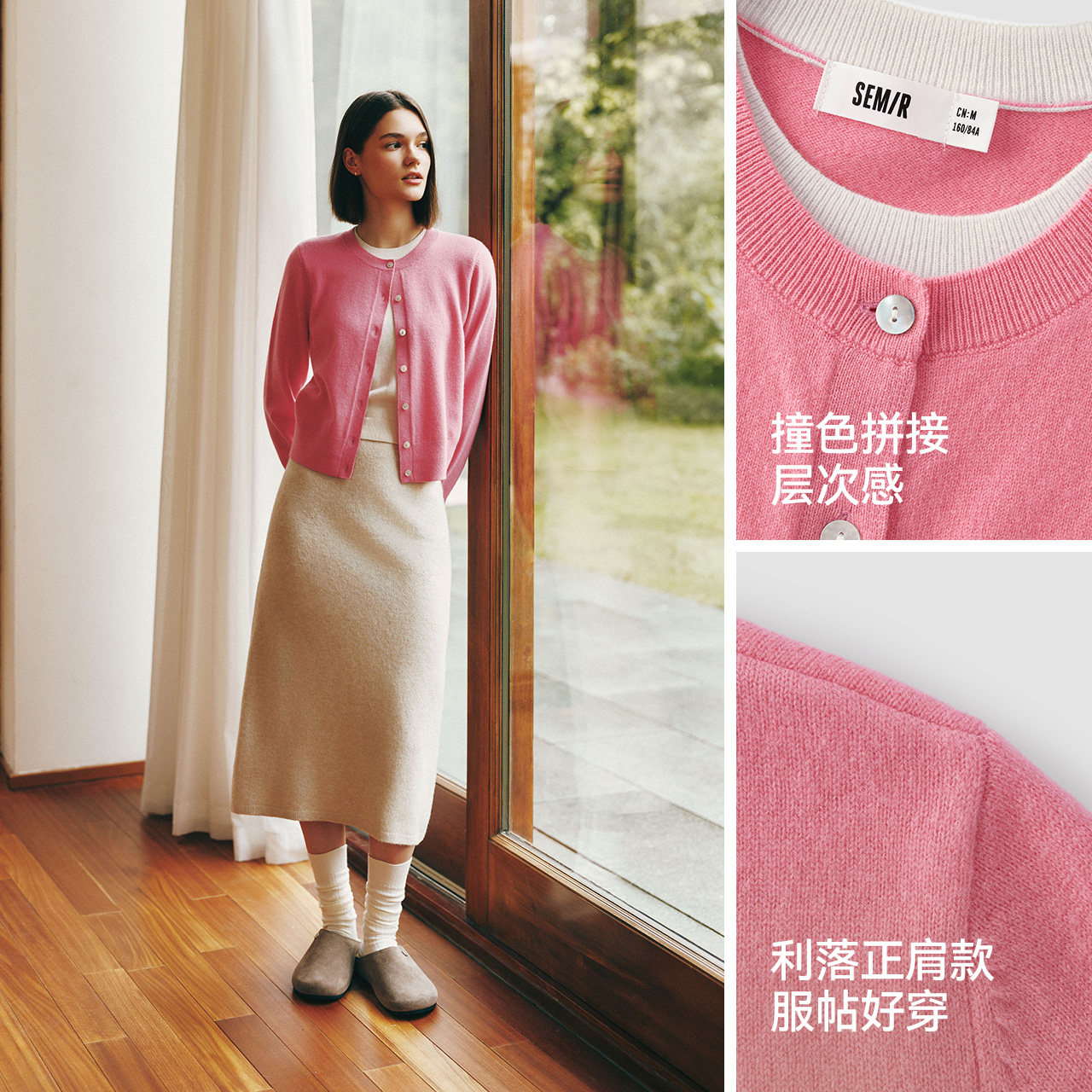 陈都灵同款|商场同款森马针织衫女冬短款假两件羊毛衫新款打底衫