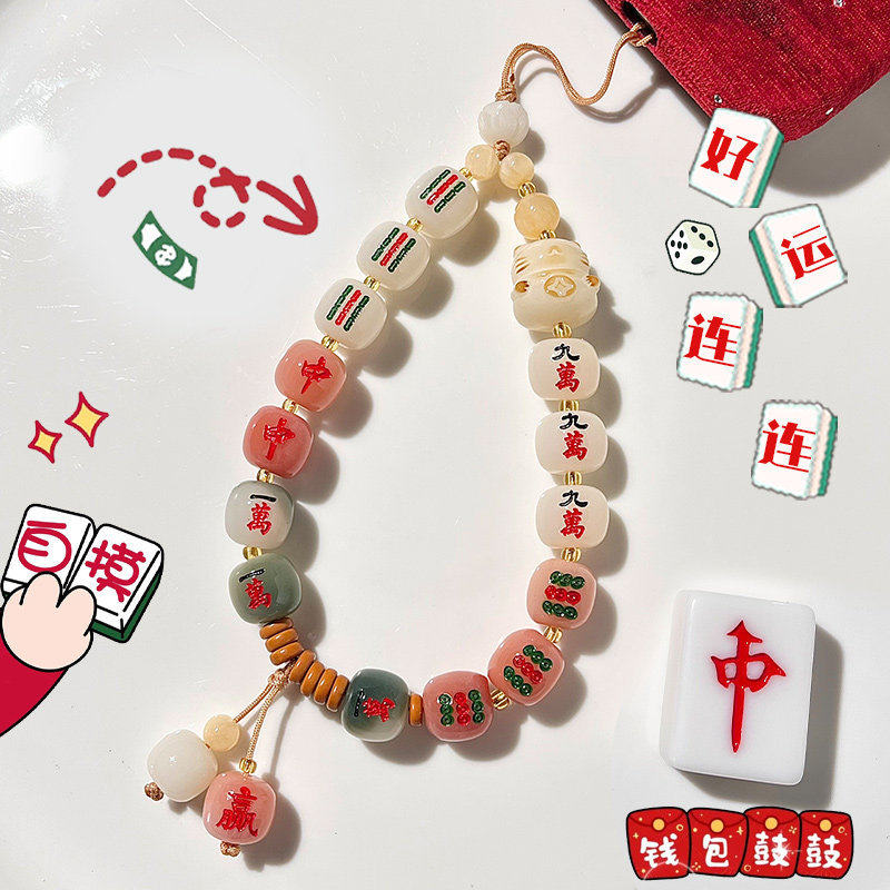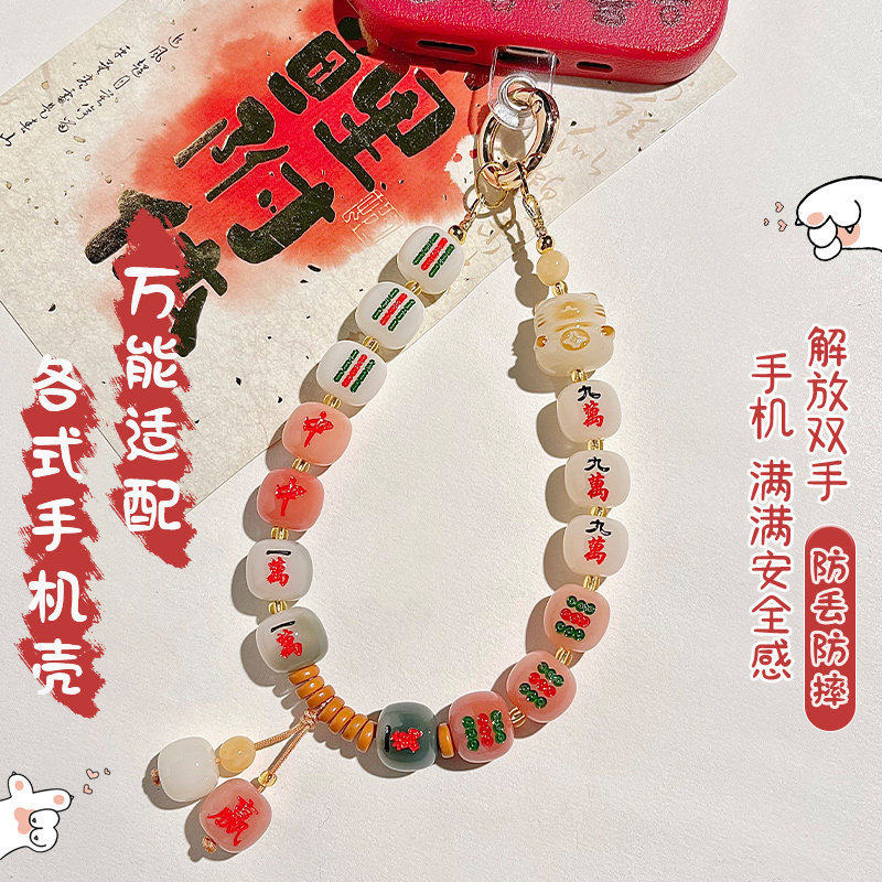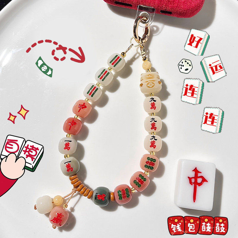 【普陀山正品】菩提好运十三幺麻将手机链发财麻将手机包包挂件