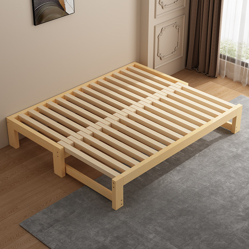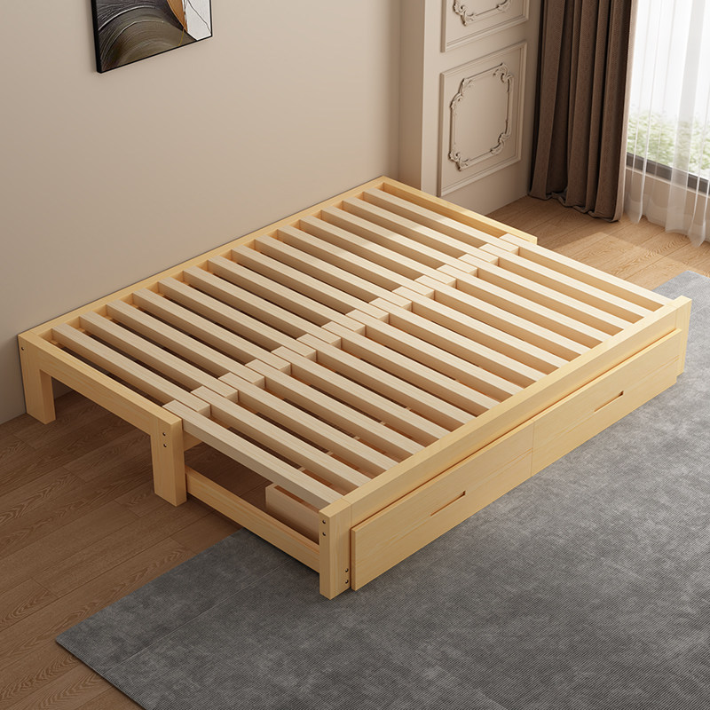 橡胶木实木床小户型沙发床客厅榻榻米抽拉床家用推拉单人床伸缩床