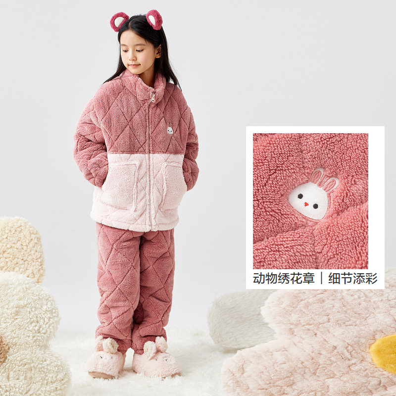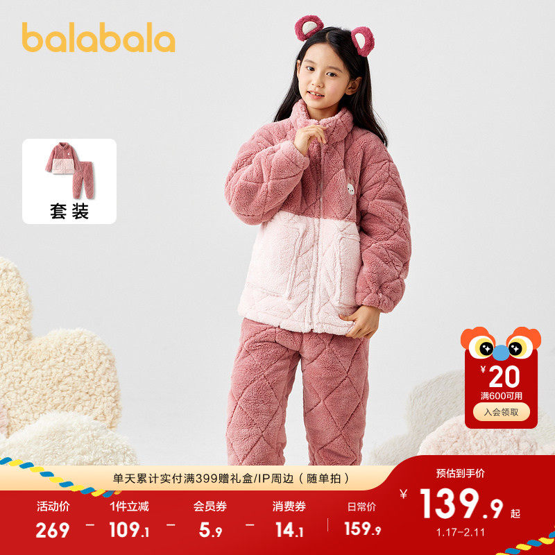 巴拉巴拉儿童睡衣套装冬季加厚男女童家居服保暖可外出省服御寒潮