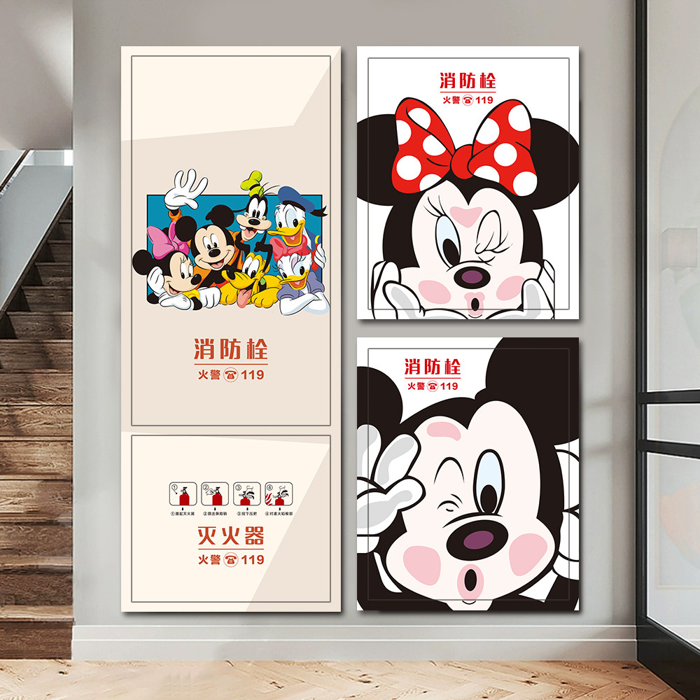 迪士尼米奇装饰消防栓贴纸画防火栓贴纸装饰灭火器配电箱贴纸画