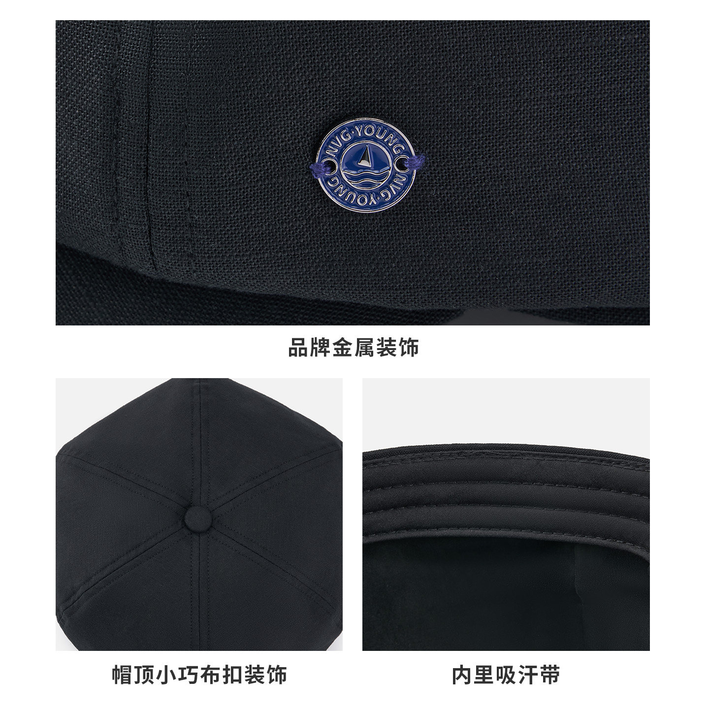 Navigare意大利小帆船黑色休闲贝雷帽女夏季百搭文艺复古画家帽