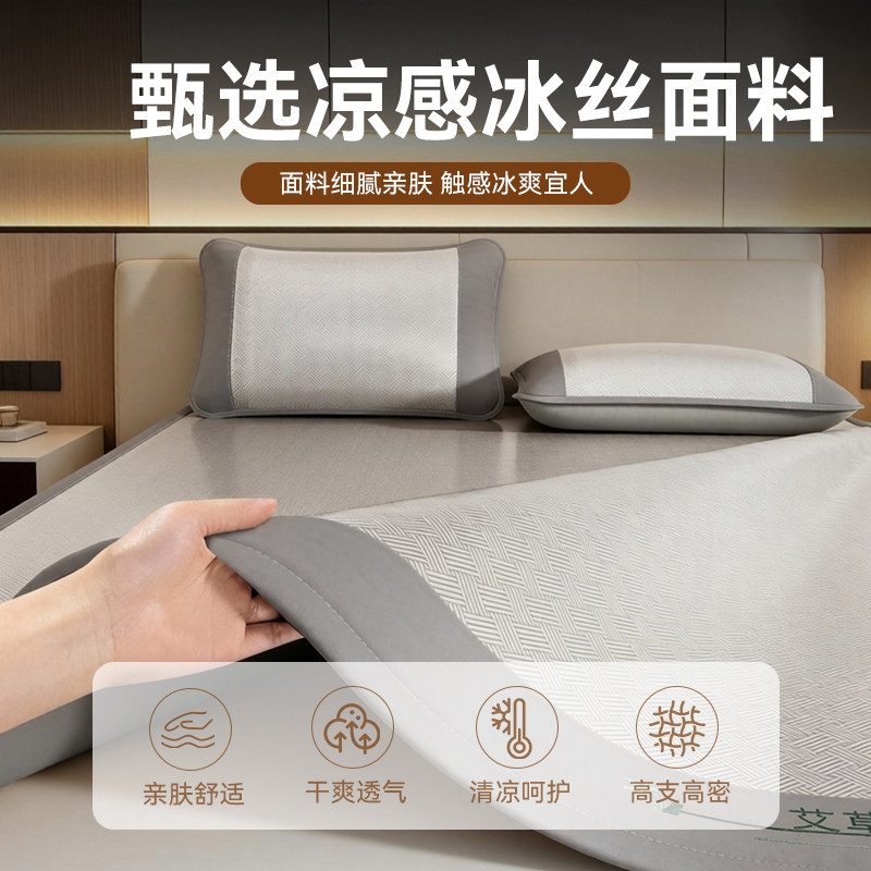 2026新款冰丝凉席夏天学生宿舍单人夏季冰藤席软席子可机洗三件套