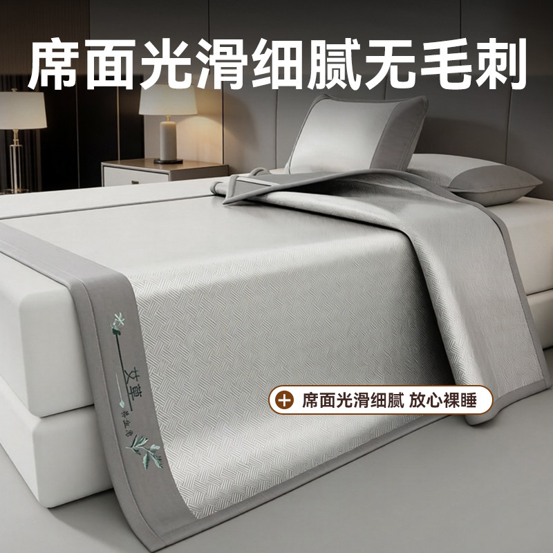 夏季凉席冰丝藤席家用双人床可折叠空调草席子老式冬夏两用天然软
