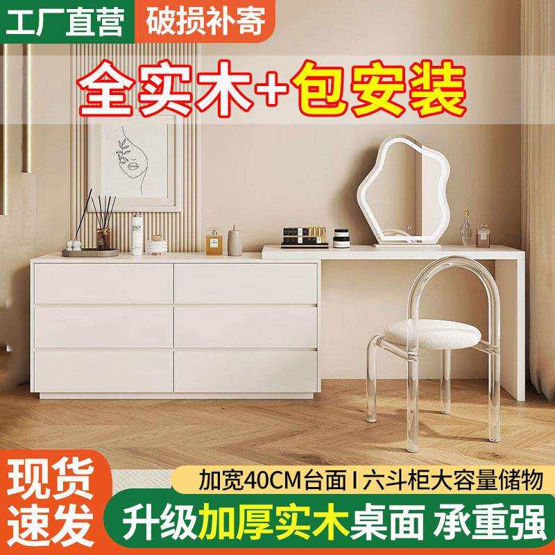 实木梳妆台斗柜一体简约化妆台奶油风可伸缩轻奢卧室床位柜小户型