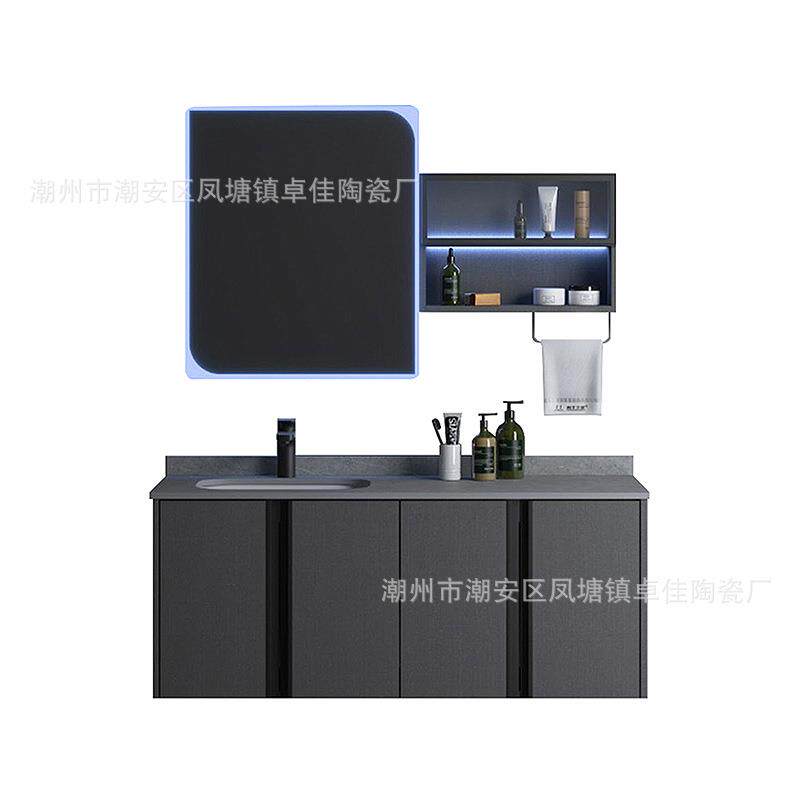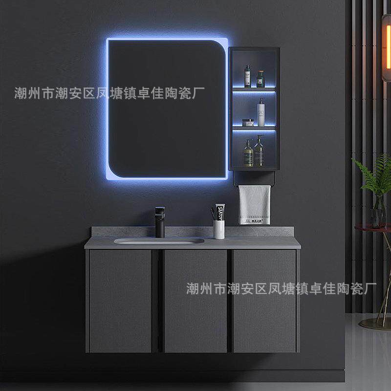 家用陶瓷一体浴室柜套装 北欧卫生间洗漱台盆橡木置物柜含镜吊柜