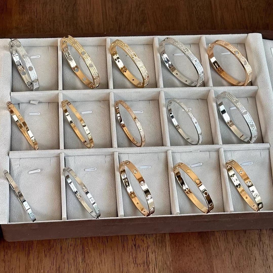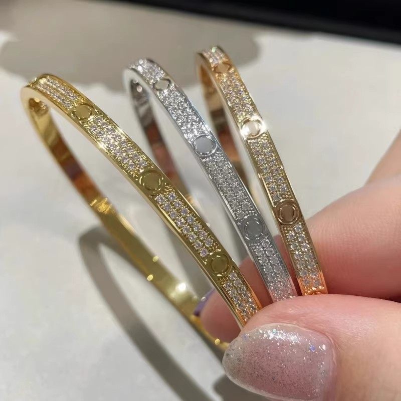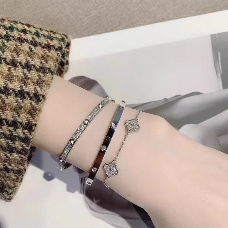 轻奢高级感满钻手镯女银色钛钢不掉色镯子手链手环新款情侣手饰品