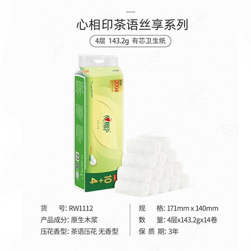 心相印无芯卷纸茶语丝享2004g提装家用实惠厕所手纸卷筒纸卫生纸