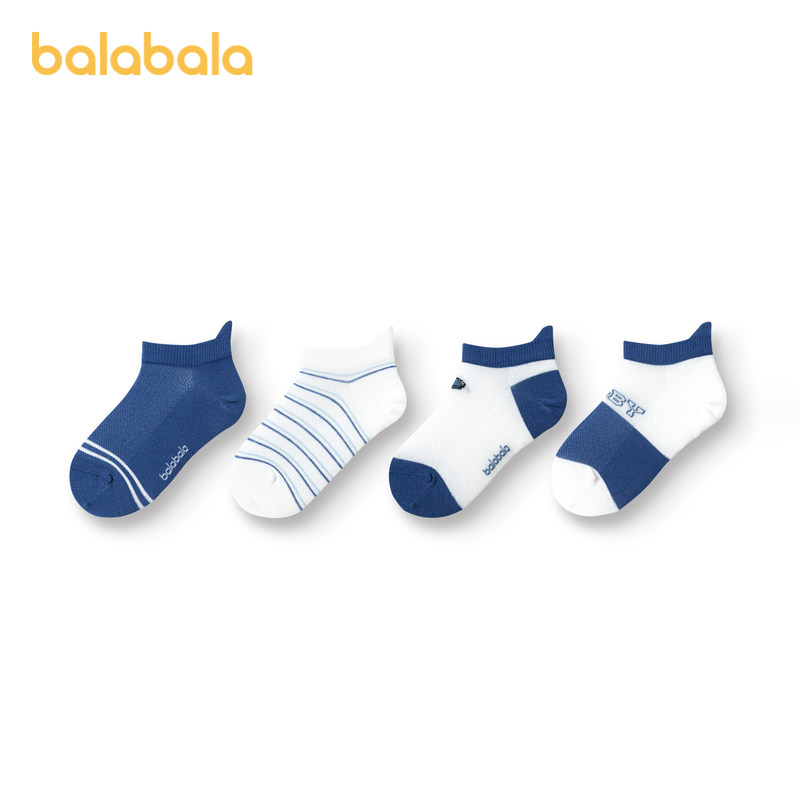 巴拉巴拉儿童船袜夏季网眼袜薄款透气男女童短袜宝宝大童棉四双装