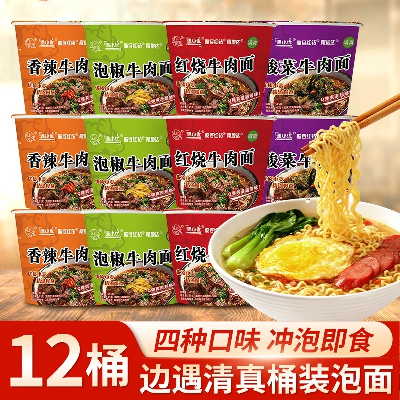 边遇清真方便面红烧牛肉面整箱12桶香辣牛肉面桶装泡面免煮夜宵