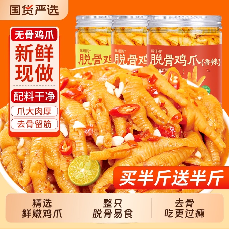 无骨鸡爪柠檬酸脱去骨凤爪旗舰店网红零食休闲即食品小吃追剧麻辣
