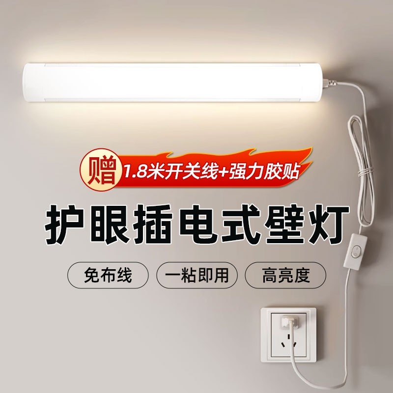 灿美家led直插式壁灯护眼插电挂墙灯宿舍照明台灯长条灯条免打孔