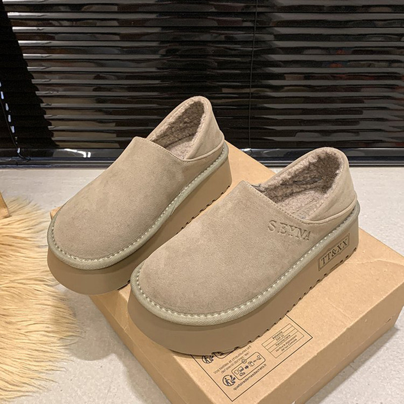 低帮厚底雪地靴女2025新款冬季懒人一脚蹬毛毛棉鞋加绒加厚女鞋子