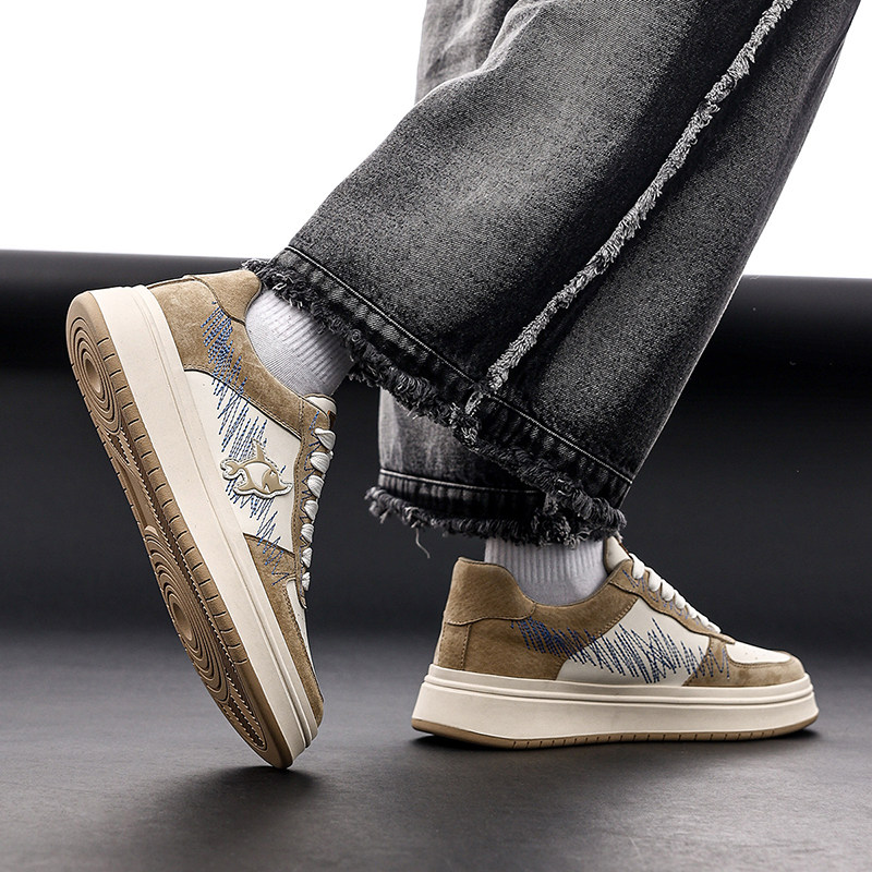 MRA碎冰美式小黑鞋板鞋男鞋2025新款厚底运动休闲鞋裂纹百搭板鞋