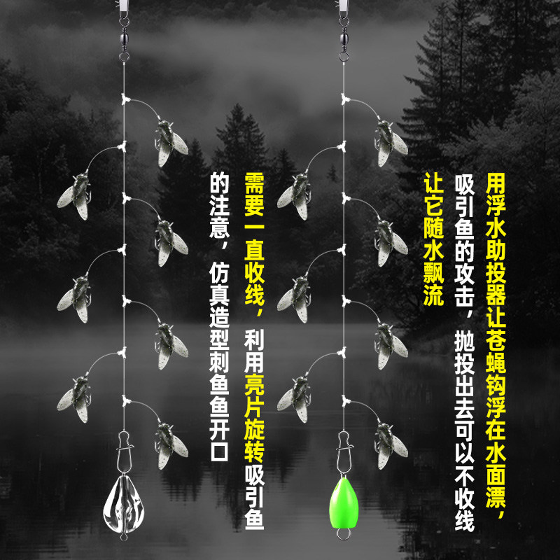 新品路亚假饵苍蝇串钩钓组仿真飞蝇钩软饵线组七星钩马口白条鱼饵