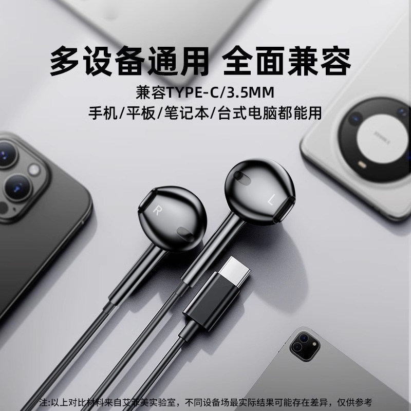 2025新款有线耳机半入耳式高音质type-c接口游戏听歌降噪手机圆口