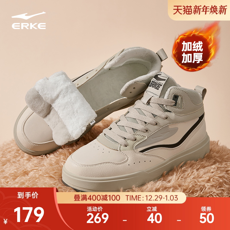 鸿星尔克板鞋男鞋冬季新款加绒鞋子加厚棉鞋男士休闲鞋高帮运动鞋