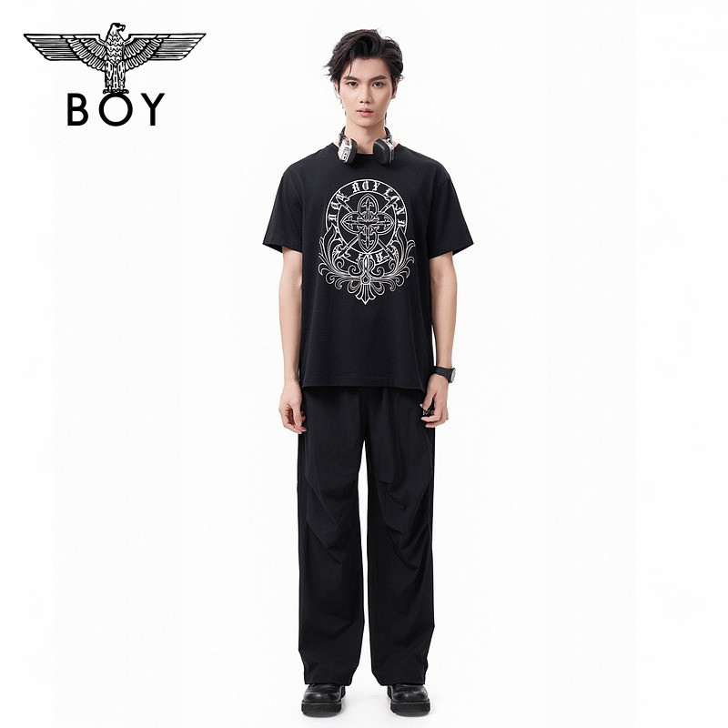 BOYLONDON黑色印花高街时尚潮牌纯棉短袖夏季男女同款T恤N01083