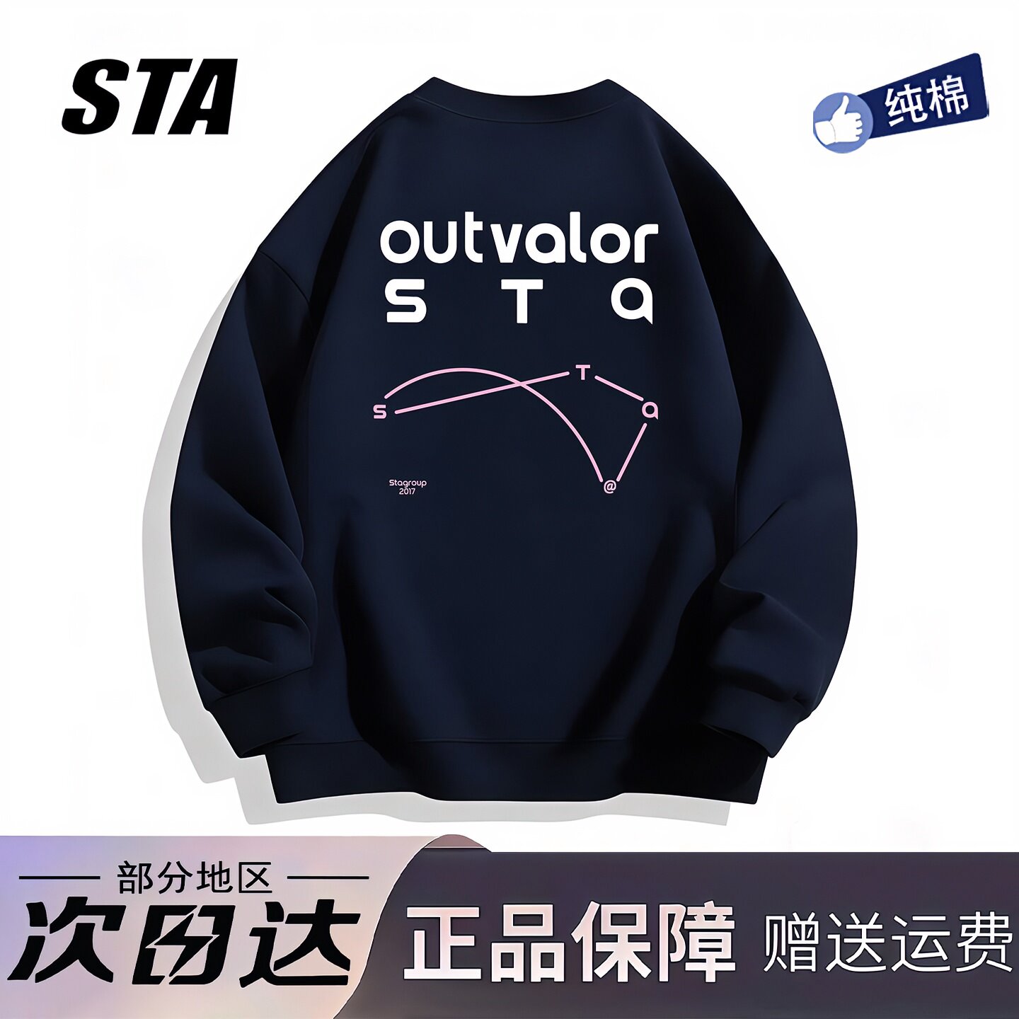 STA旗舰店潮牌美式字母圆领无帽卫衣男女高街纯棉情侣长袖上衣