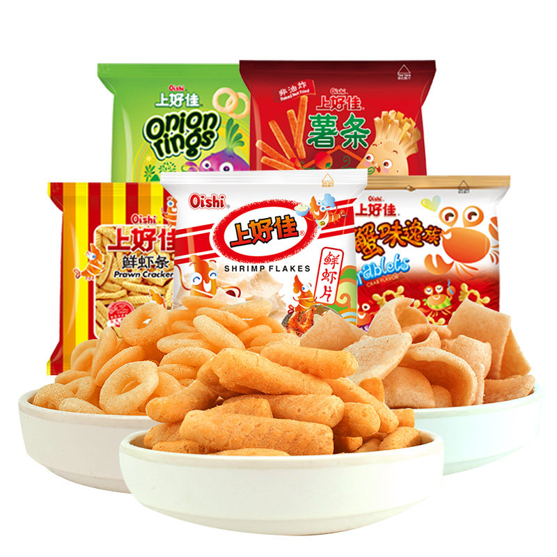上好佳鲜虾片虾条薯片洋葱圈零食大礼包解馋小吃怀旧休闲食品批发