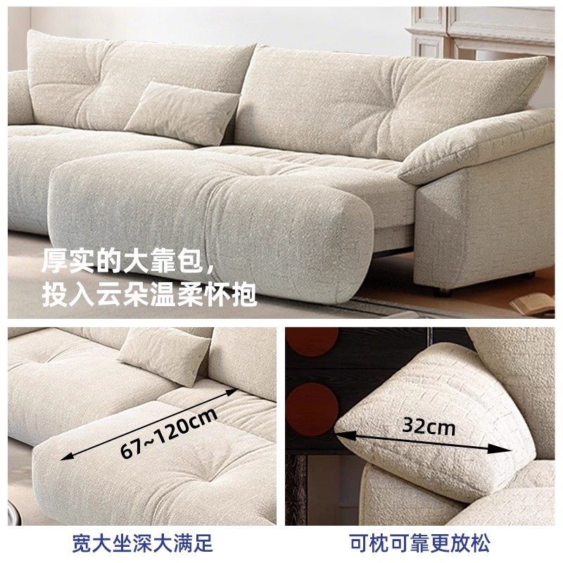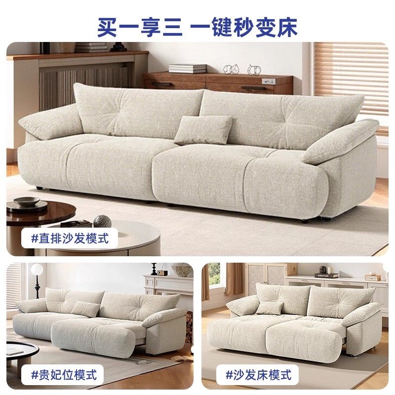 电动沙发床法式奶油风小户型客厅多功能伸缩雪尼尔高靠背布艺沙发