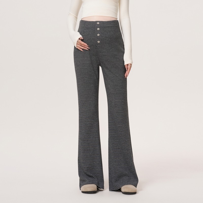 孕妇裤子秋季外穿条纹喇叭裤2025新款春秋装不勒肚子长裤