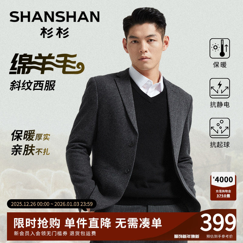 杉杉休闲西服外套男2025秋季新款西服商务保暖羊毛男士西装小单西