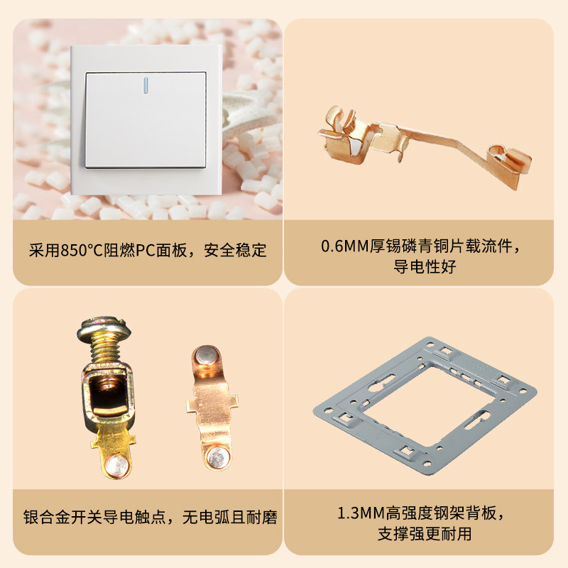 国际电工开关插座面板86暗装超薄奶油风一开五孔usb空调16安三孔