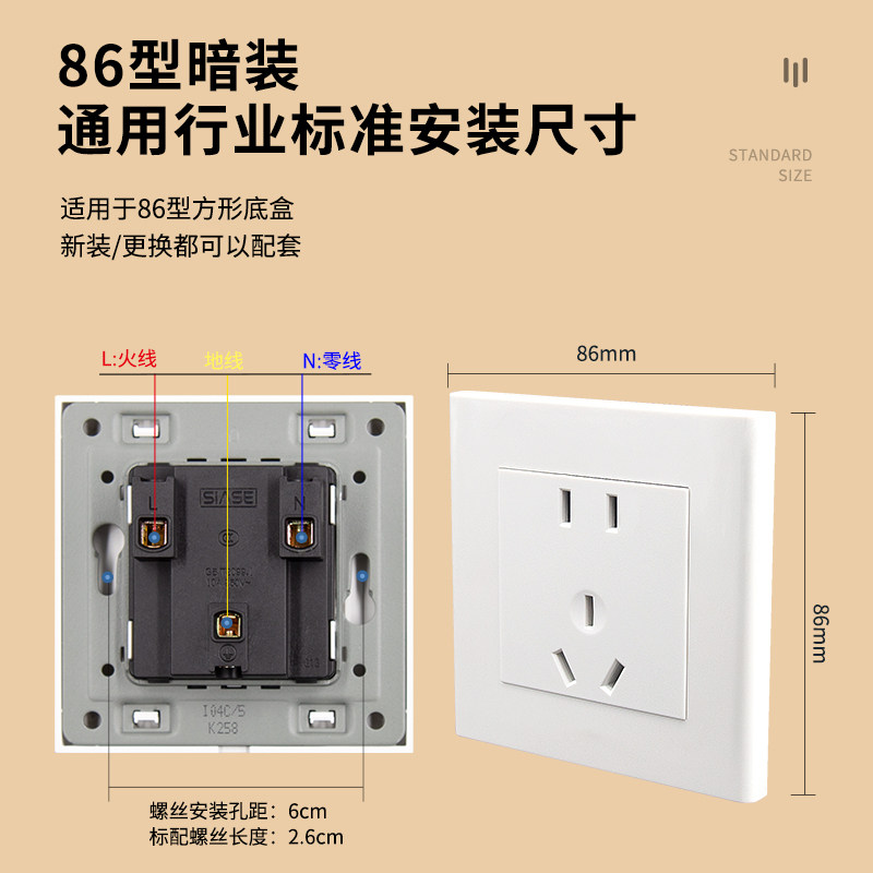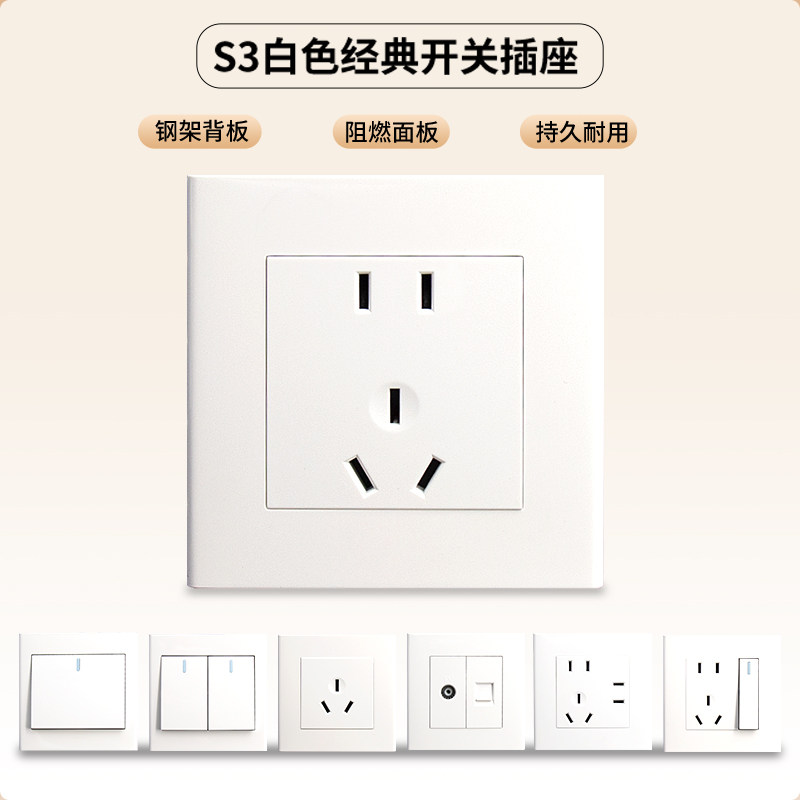 深思白色经典开关插座86型墙壁五孔插座带开关二三S3系列三孔暗装
