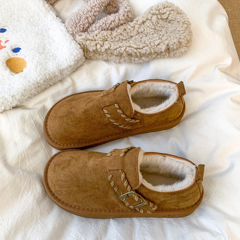 星期六复古加绒棉鞋女冬2025新款皮带扣软底保暖毛毛鞋加厚雪地鞋