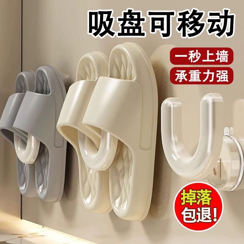 入户浴室拖鞋架吸盘式免打孔壁挂式卫生间专用沥水挂架挂钩置物架