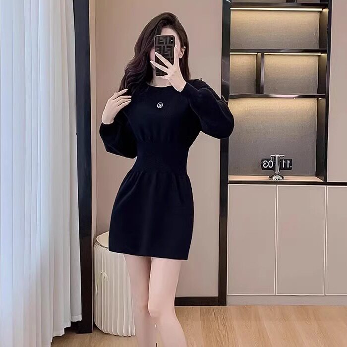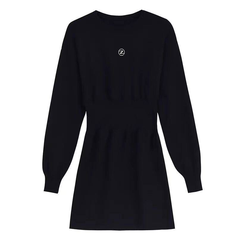 别致小黑裙配大衣内搭黑色针织连衣裙女秋冬小个子显瘦打底毛衣裙