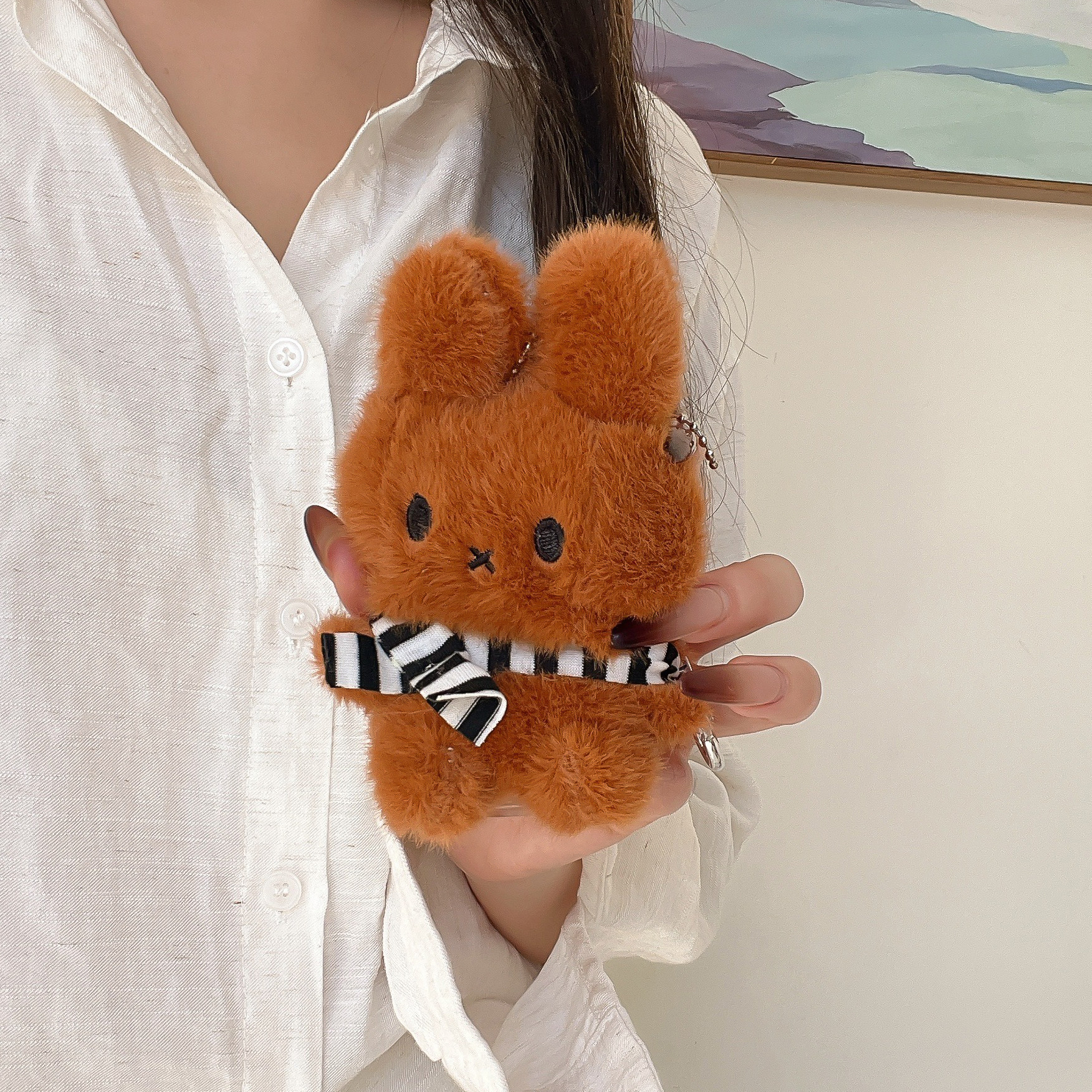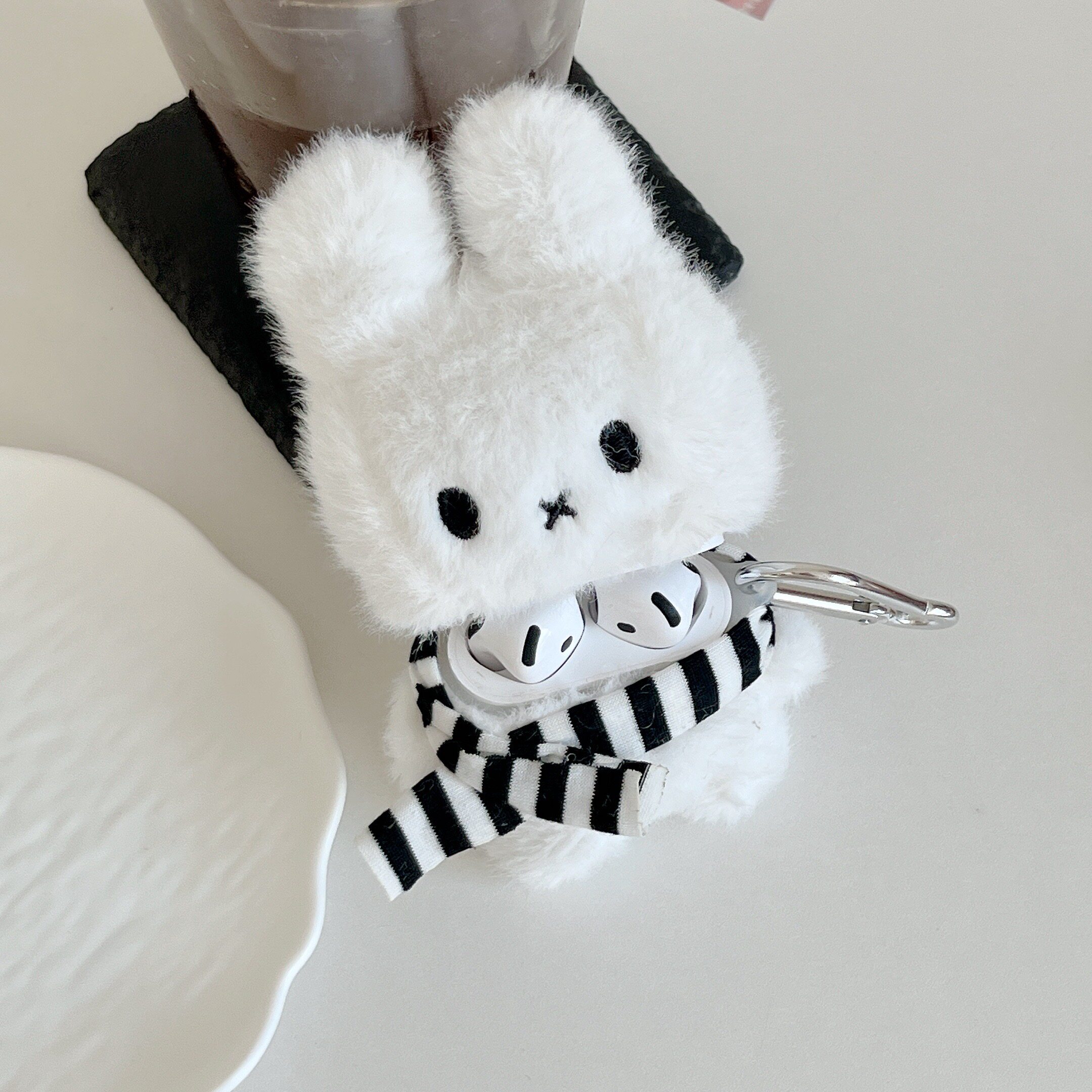 毛绒围巾小兔子适用苹果耳机保护套airpods4无线蓝牙耳机壳四三代airpodspro2二代ipod耳机盒airpods3保护壳