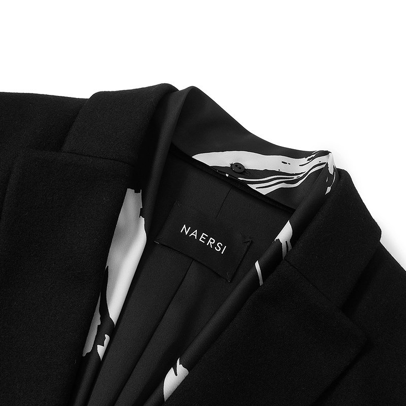NAERSI娜尔思绵羊毛西装可拆卸丝巾2025年秋季新款轻柔舒适外套女
