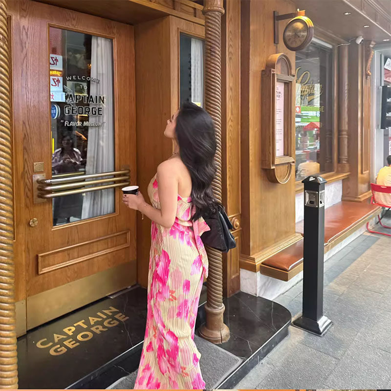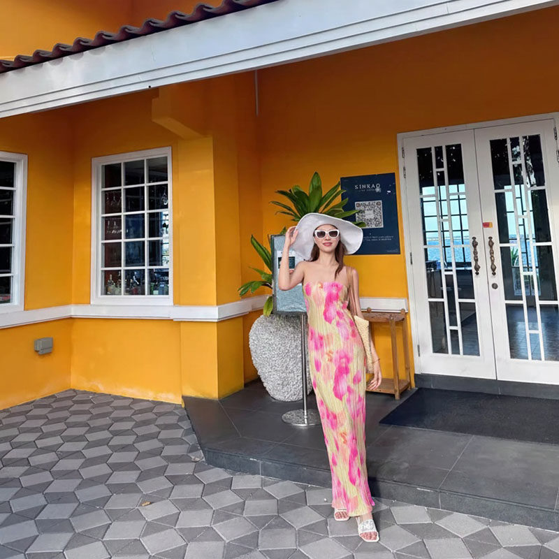 泰式INS风海岛度假沙滩印花分体三件套 泡温泉遮肉显瘦抹胸比基尼