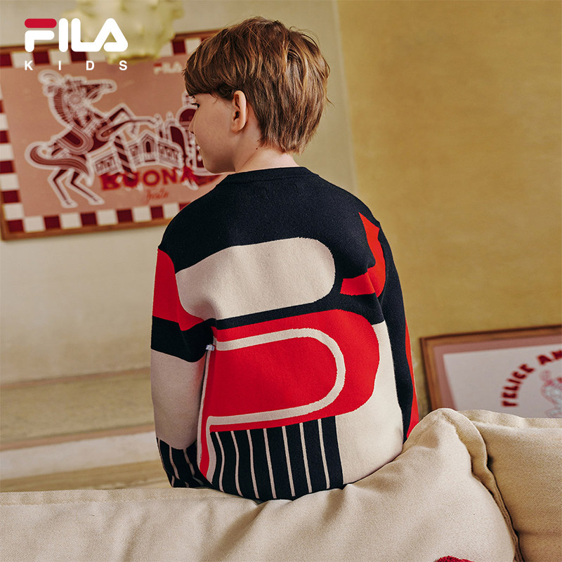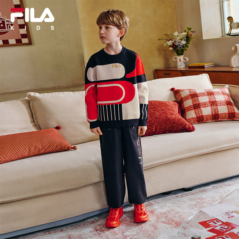 FILA KIDS斐乐童装儿童编织衫春季款男女童新年圆领宽松套头毛衣