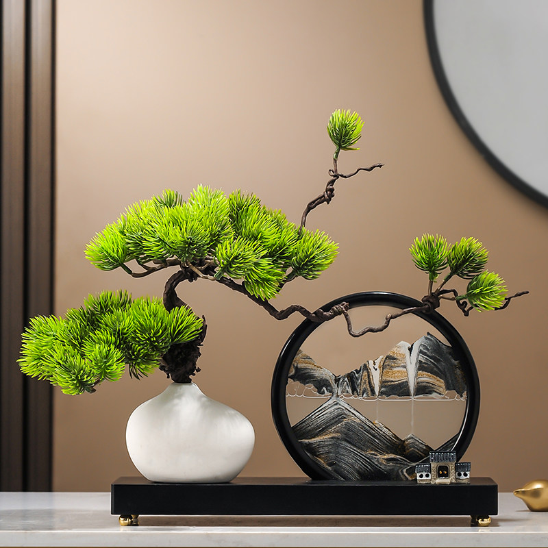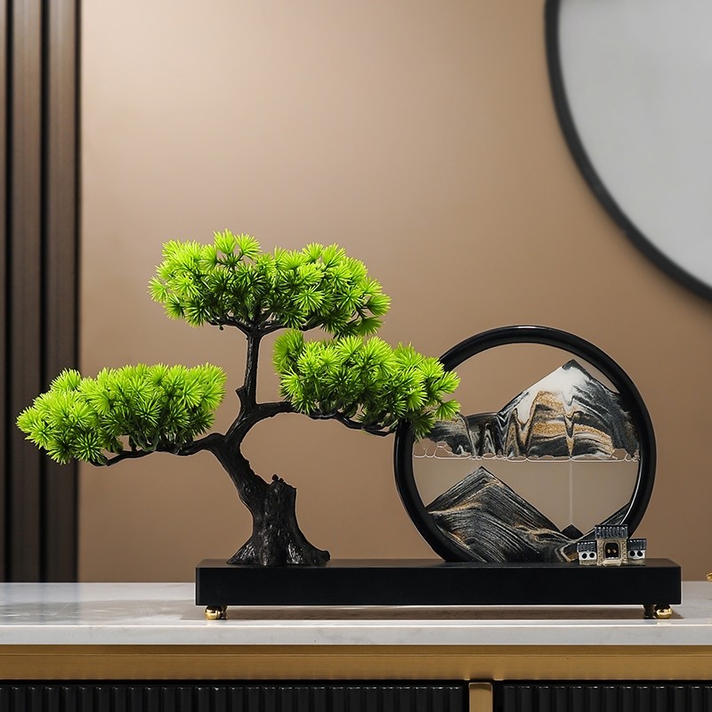 迎客松流沙画沙漏摆件客厅玄关办公室茶室桌新中式禅意酒柜装饰品