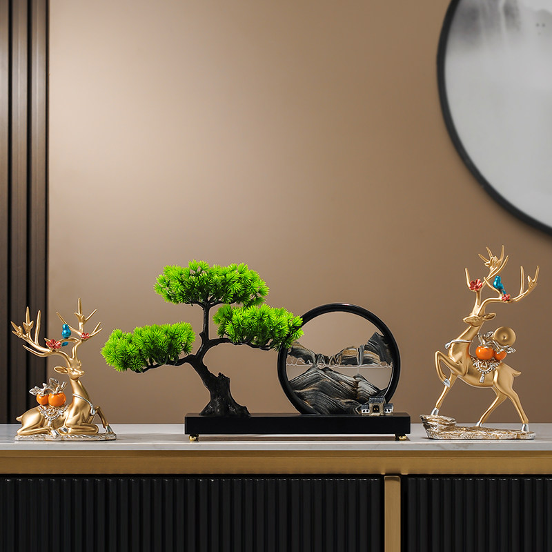 创意招财鹿摆件客厅酒柜玄关家居摆设电视柜福鹿装饰新房乔迁礼物