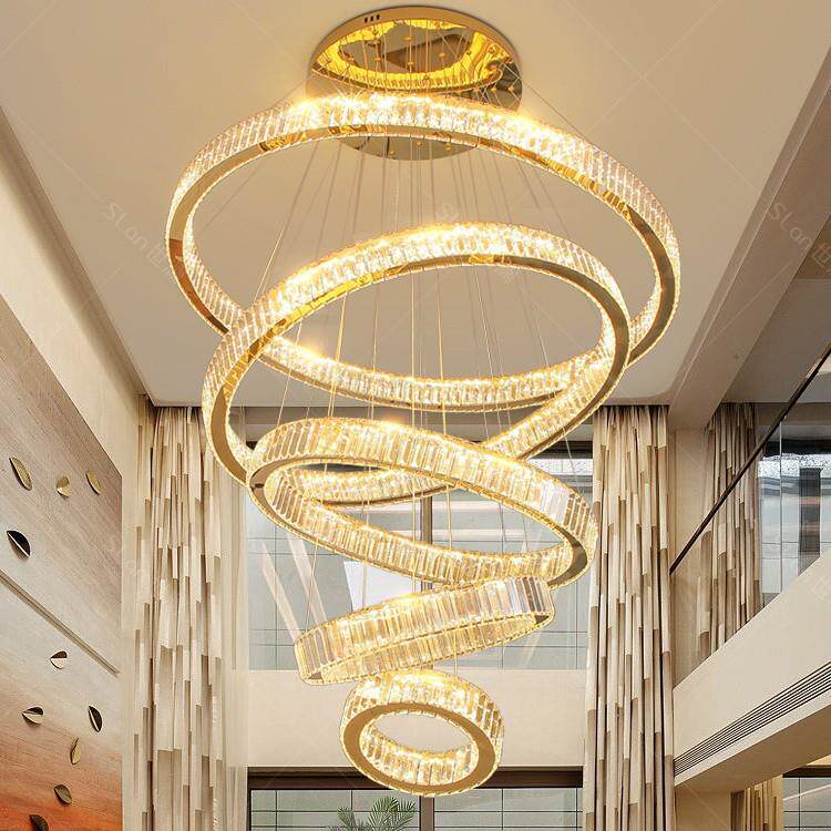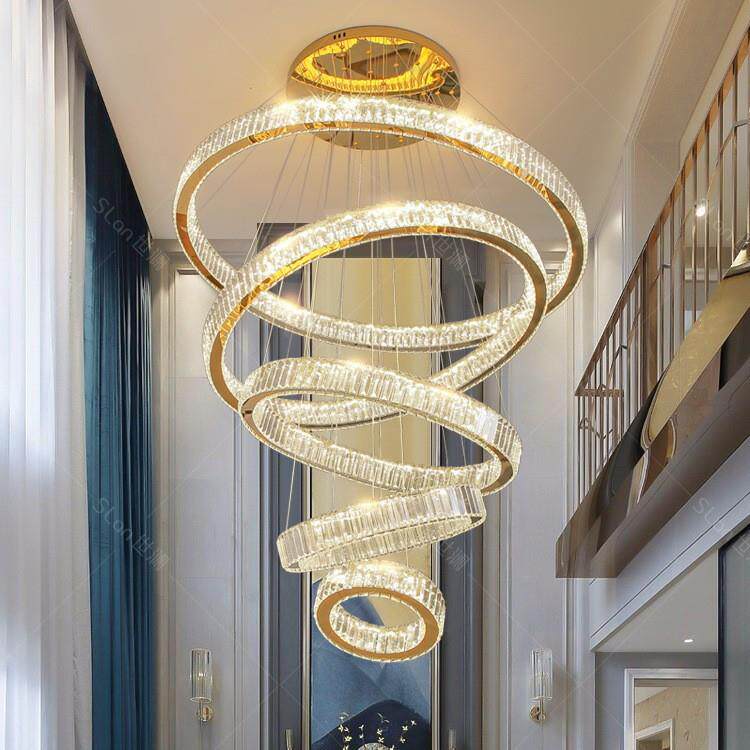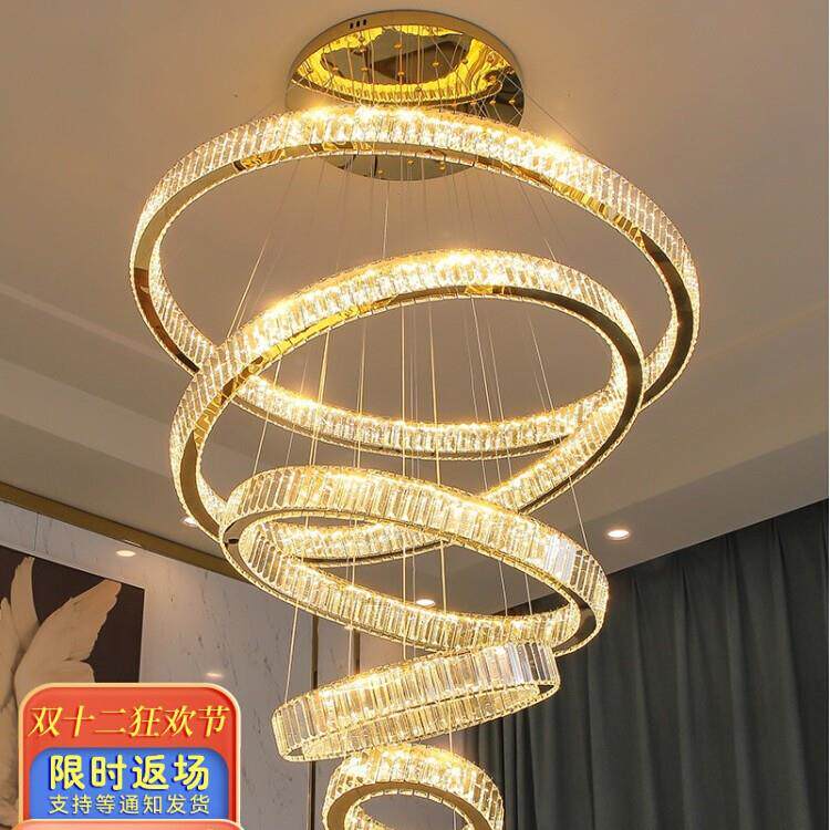 复式楼别墅客厅大吊灯简约现代轻奢水晶灯具公寓挑空楼梯灯长吊灯