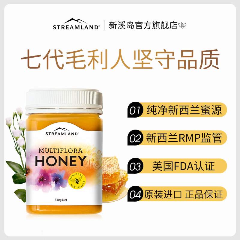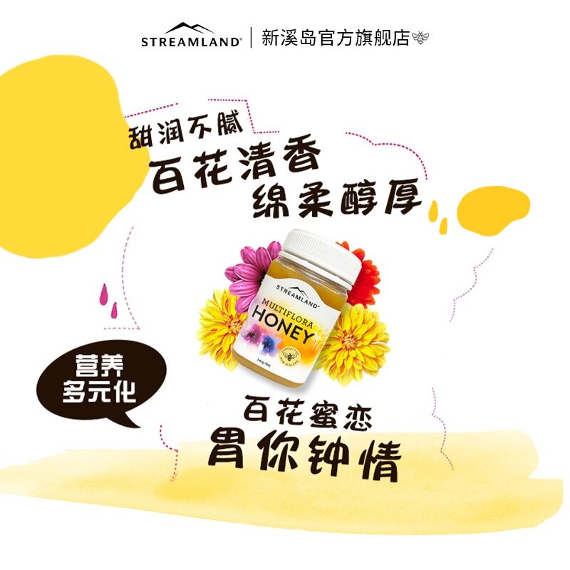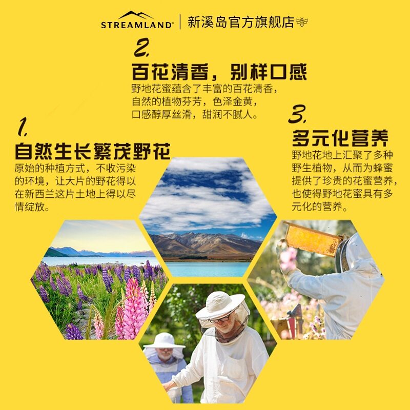 Streamland新溪岛野地花蜂蜜多花百花蜜340g纯正新西兰进口无添加