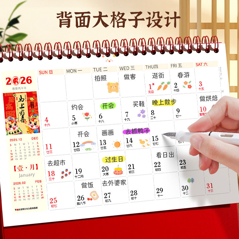 2026年新款台历创意卡通日历全年马年迷你小台历桌面摆件办公室学生每日计划表工作自律打卡记事mini计划月历