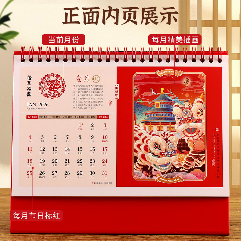 台历2026年新款日历定制logo创意简约小清新韩式办公年历个性中国风桌面摆件商务工作记事计划本订制广告月历