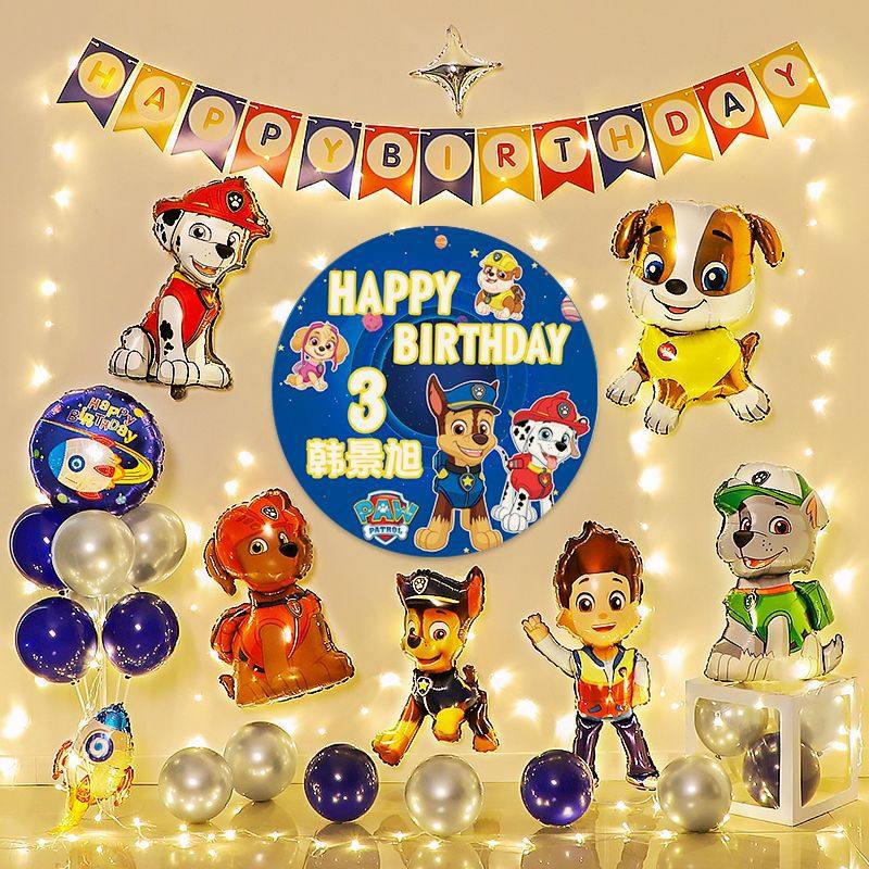 汪汪队男女孩周岁生日气球装饰儿童狗宝宝电视投屏场景布置背景墙