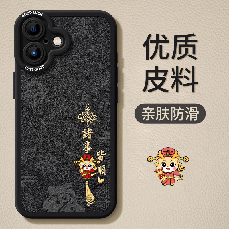 优思顿适用苹果17手机壳新款iphone17promax诸事皆顺17pro简约13黑色15pro高级感16情侣12皮质14爆款17air套