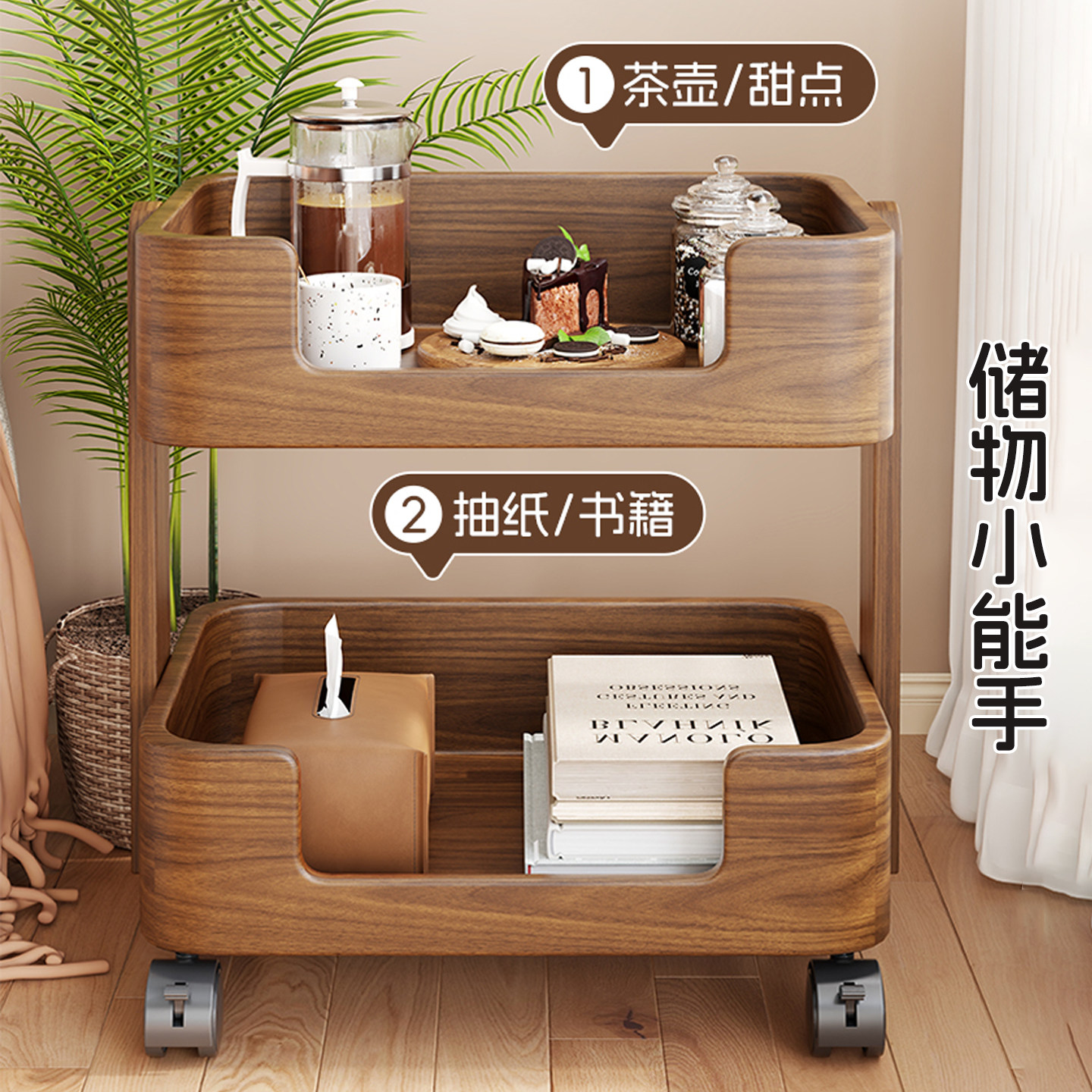 可移动茶几客厅家用沙发边几床头置物架小推车新款阳台小圆桌子