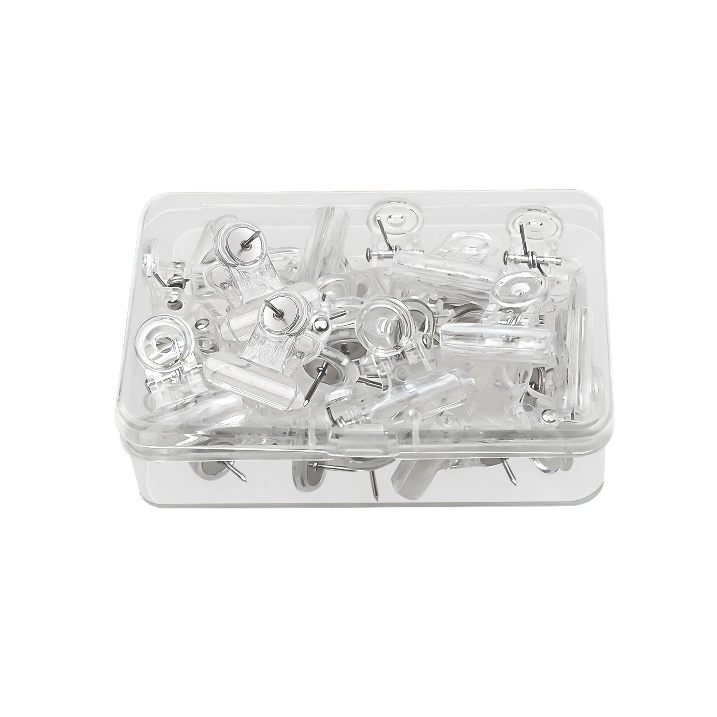 100个透明图钉照片夹子工字钉学生用幼儿园按钉软木板固定照片展示墙毛毡板相片夹照片夹挂墙夹子钉小木夹A1