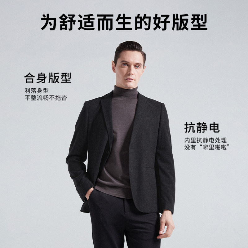 杉杉2025秋冬季新款磨毛西服男士修身小单西装抗皱保暖商务外套