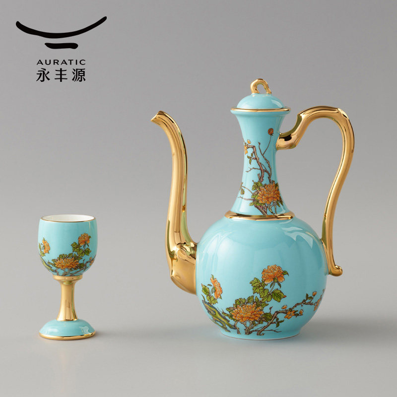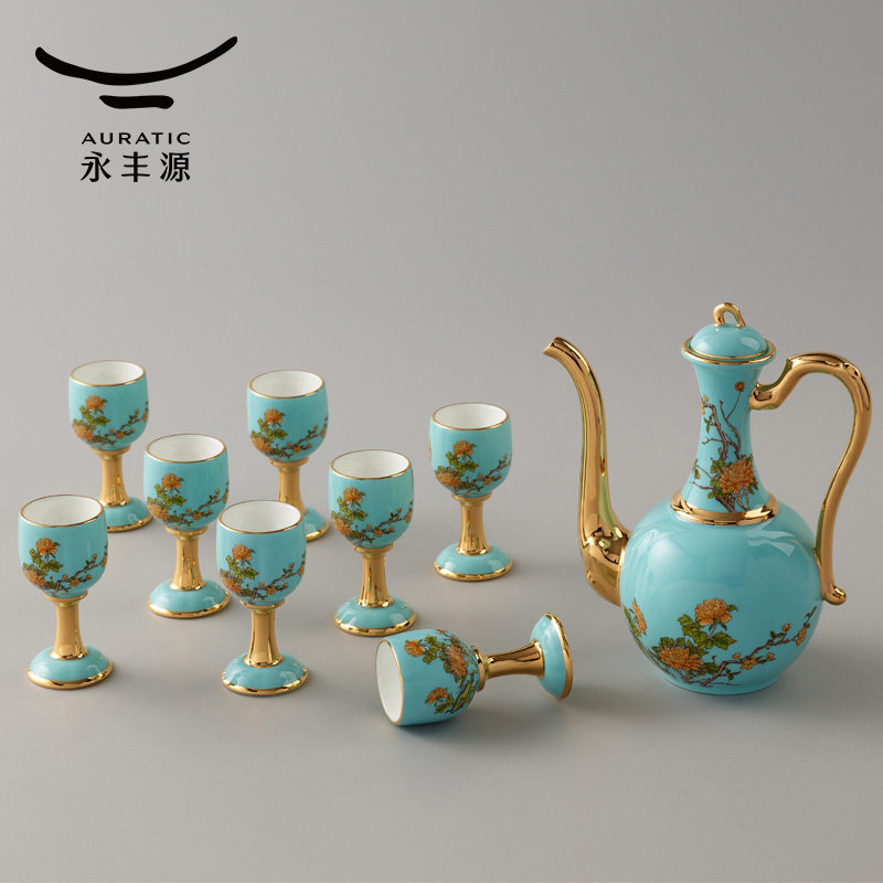 永丰源 夫人瓷西湖蓝10头酒具 高档陶瓷酒杯酒壶一壶八杯乔迁礼品