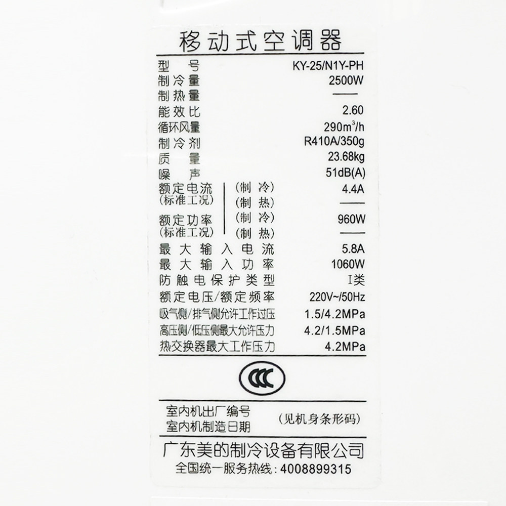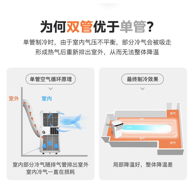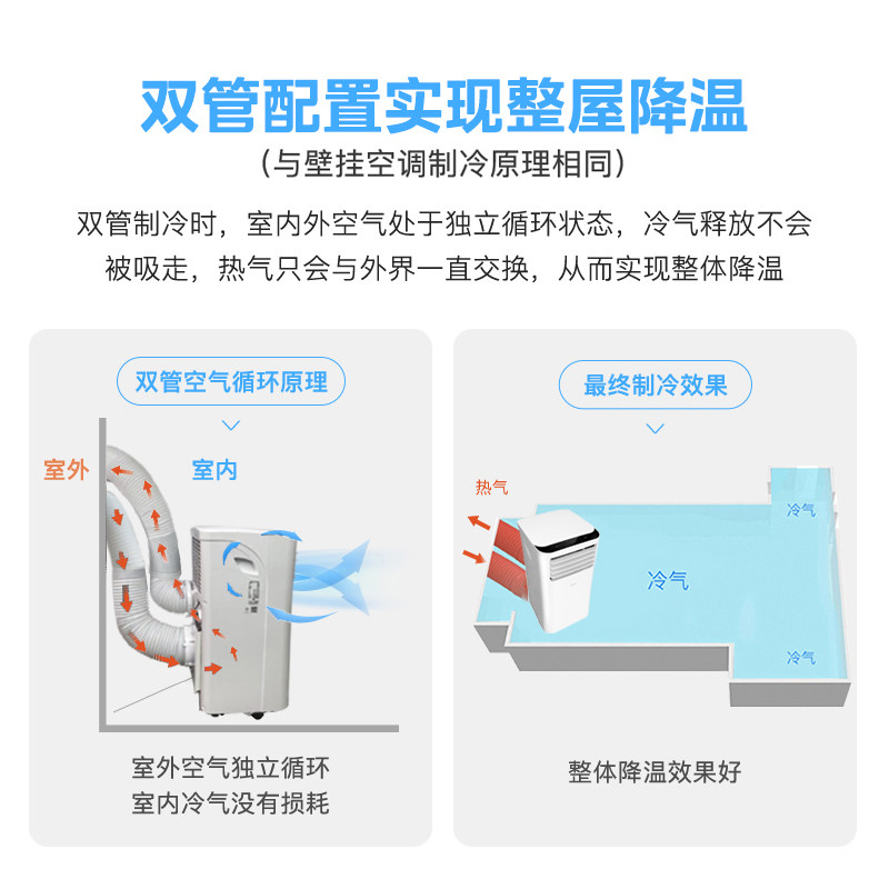 美的双管移动空调大1匹租房一体机小型空调厨房便携露营帐篷户外