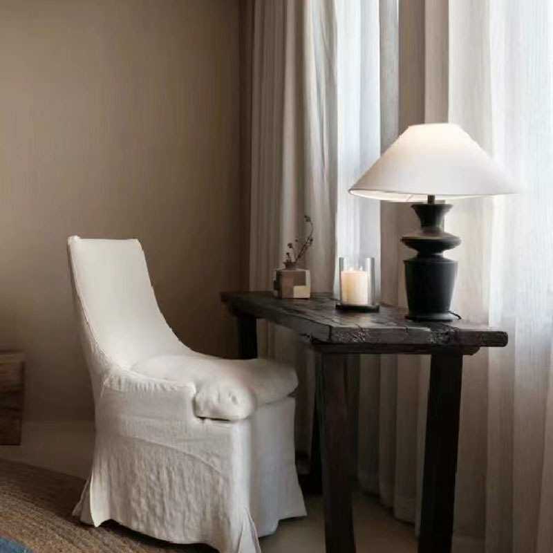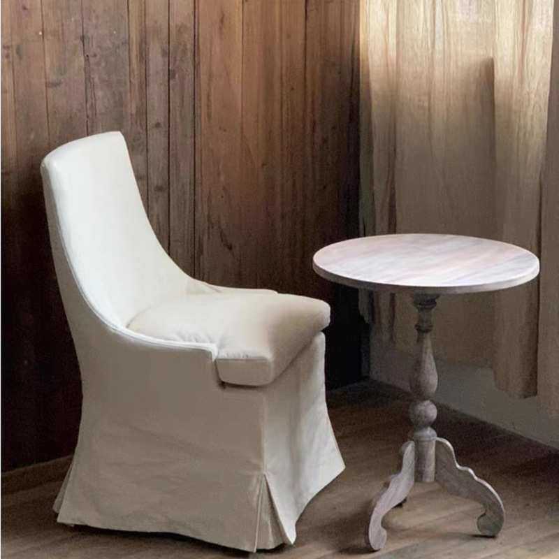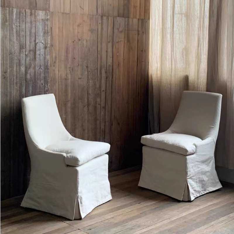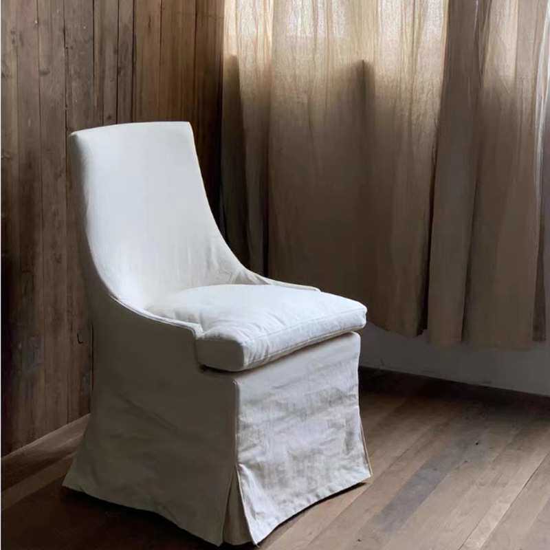 北欧复古侘寂风民宿布艺全实木可拆洗白色餐椅布艺单人椅高背沙发